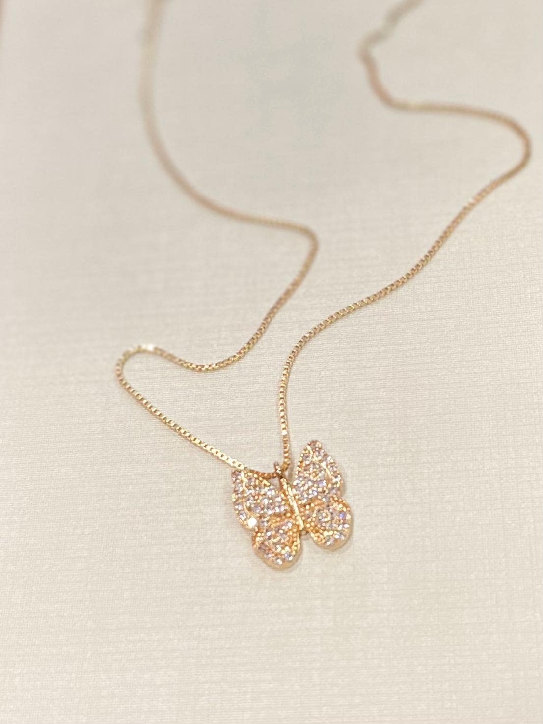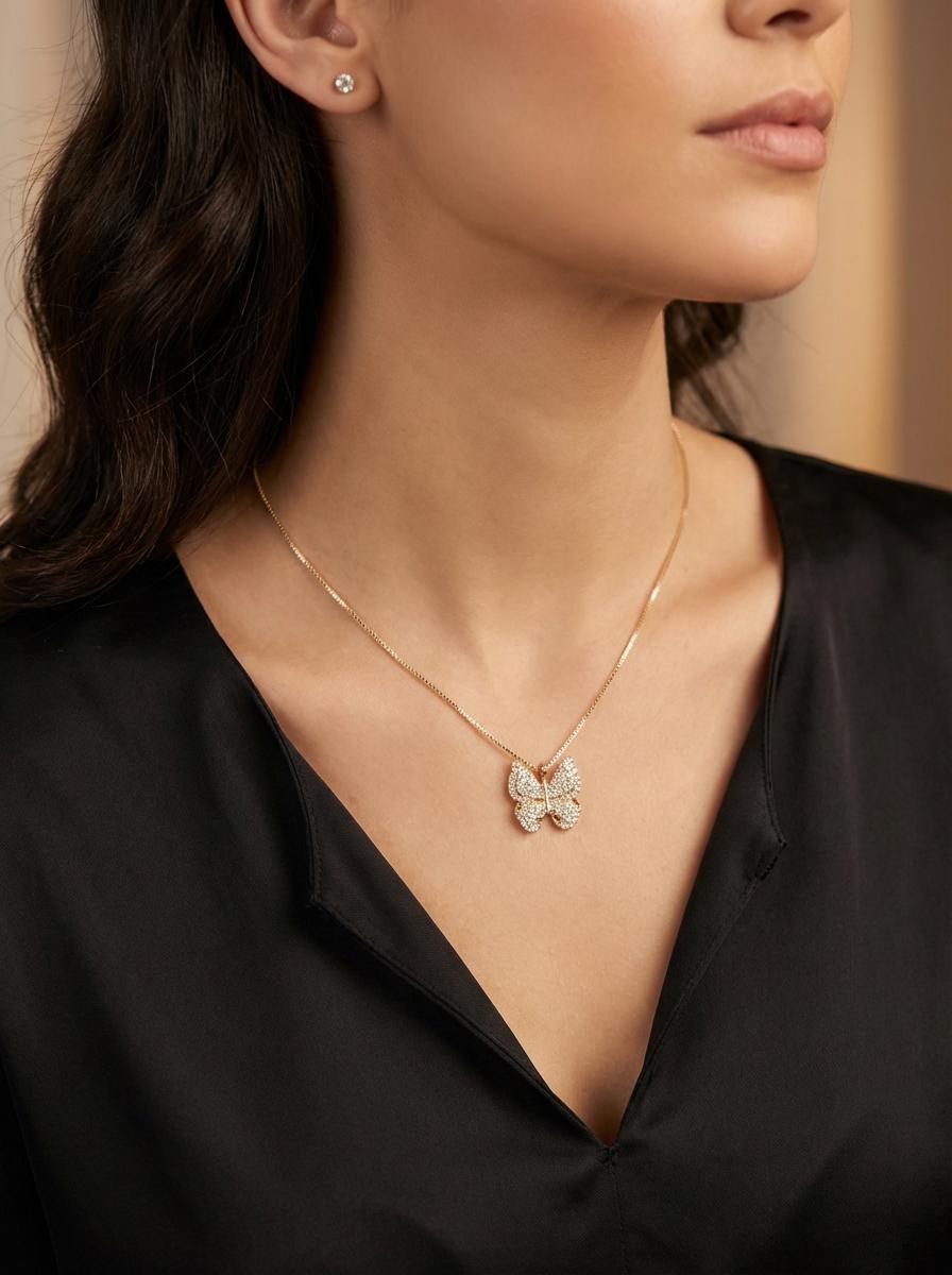 Add a touch of whimsical elegance to your collection with this Pave Butterfly Necklace. This enchanting piece features a beautifully detailed butterfly pendant, with its wings intricately encrusted with brilliant cubic zirconia. Symbolizing transformation, hope, and new beginnings, the butterfly’s graceful silhouette is finished in high-polish 18K gold-filled metal for a radiant, long-lasting glow.