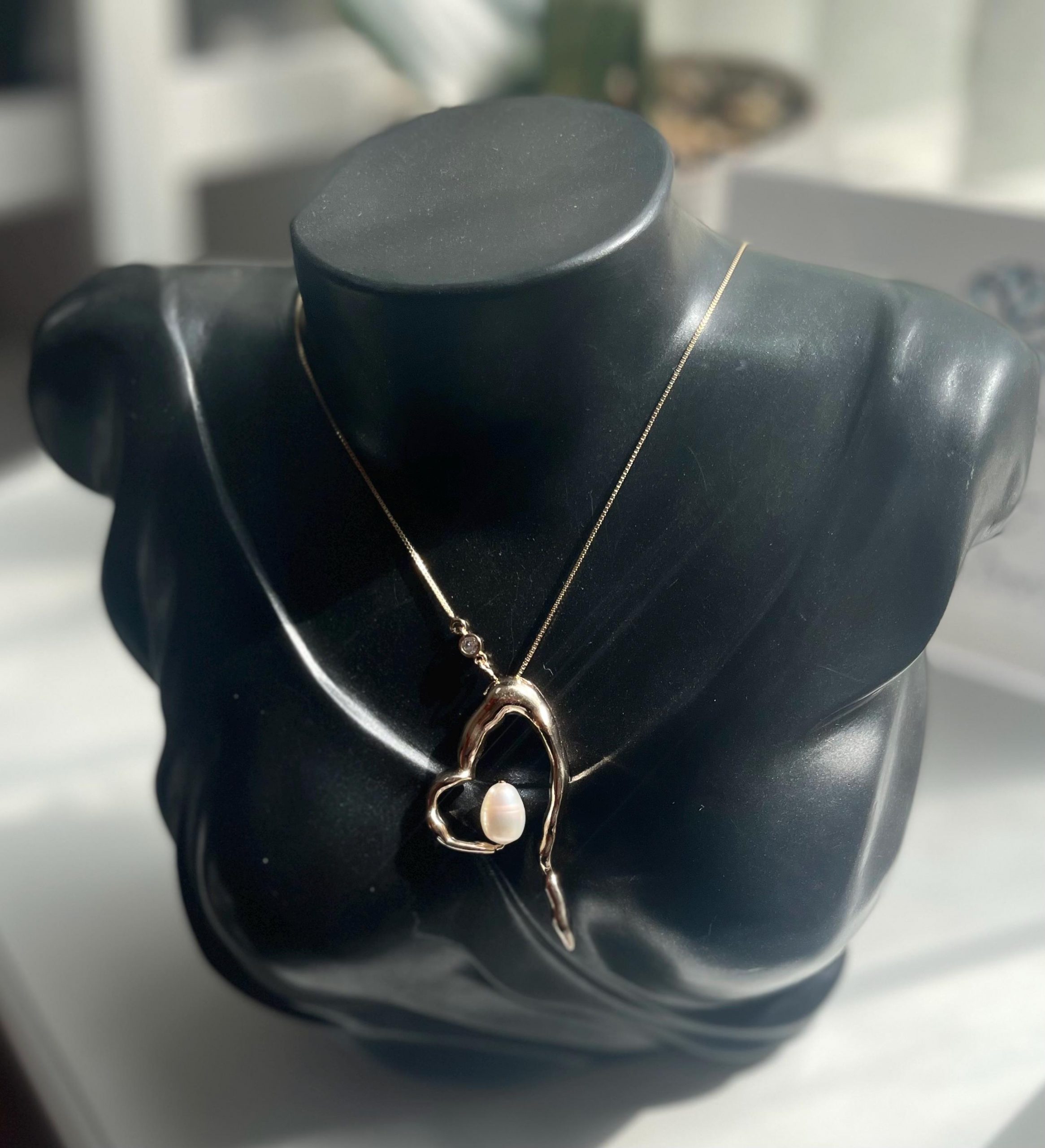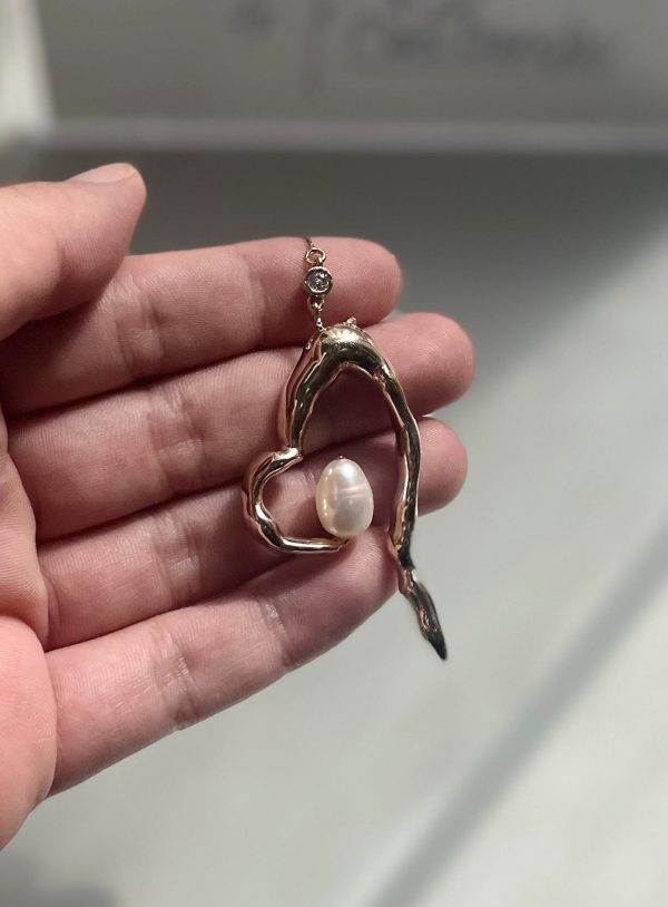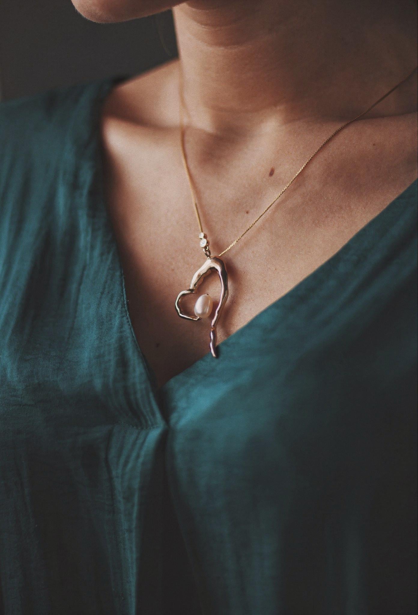 Stand out with this heart-shaped necklace featuring a pearl as its centerpiece. Adjustable, up to 14 inches in length.