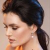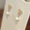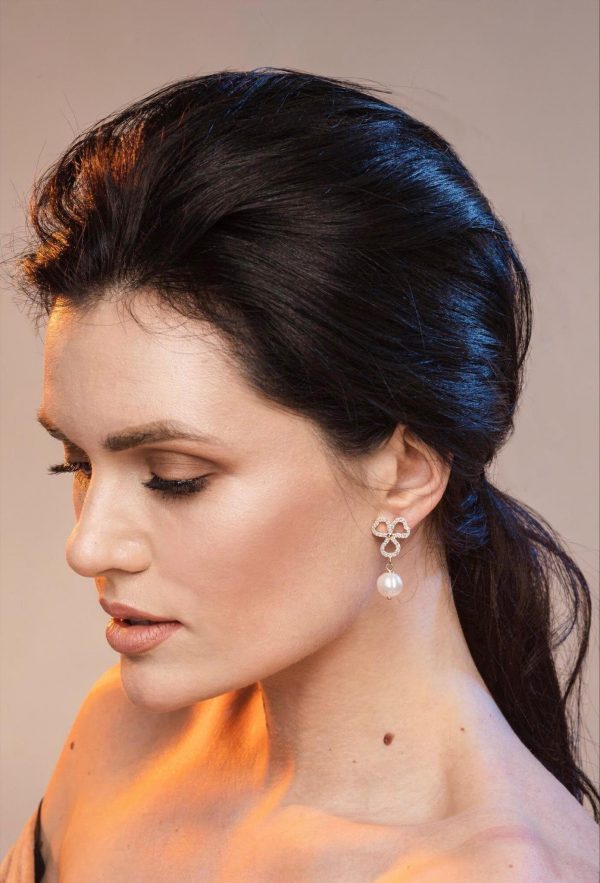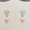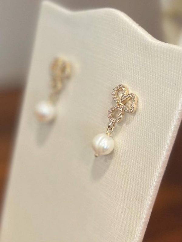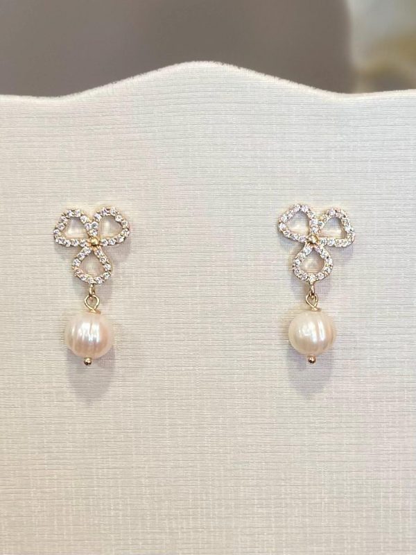 Featuring a delicate, three-leaf clover (triquetra) design encrusted with shimmering pavé crystals, these earrings are finished with a lustrous, genuine freshwater pearl that dances with every movement.