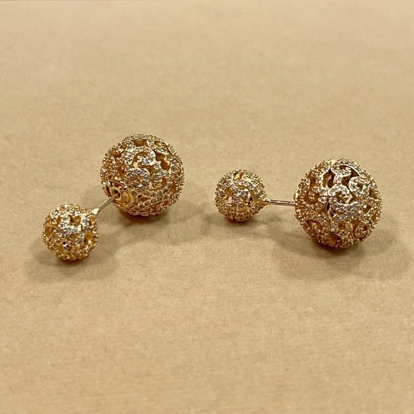 Filigree Double-Ball Stud Earrings offer a stunning 360-degree sparkle, blending vintage-inspired craftsmanship with a trendy “front-back” silhouette. Designed to be admired from every angle, these earrings are a perfect choice for those who love intricate, open-work jewelry.