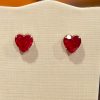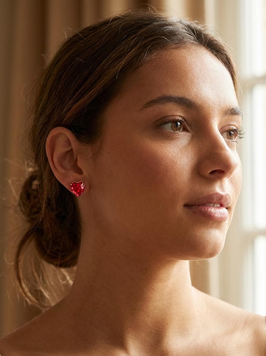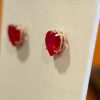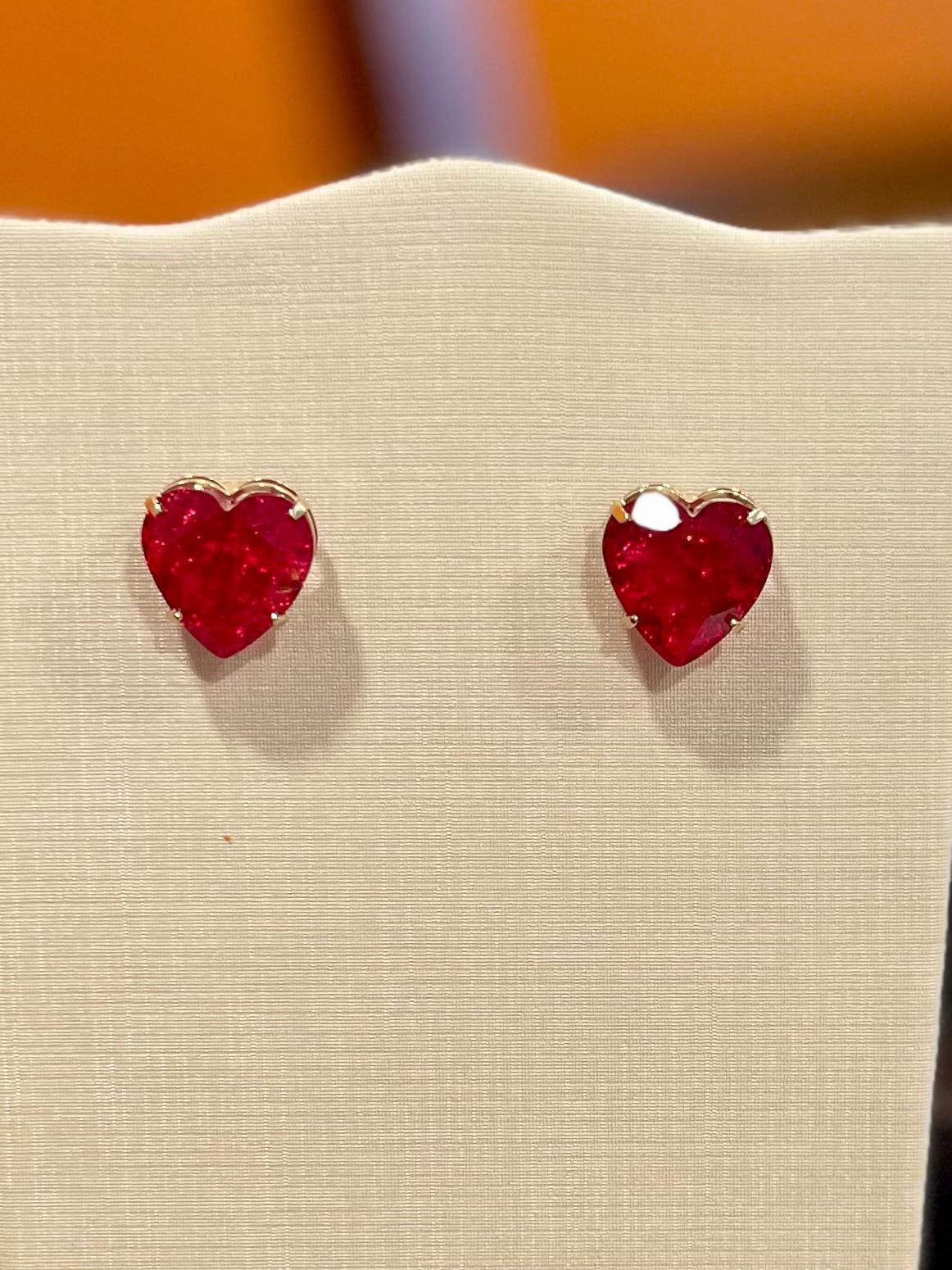 Ruby Red Crushed Ice Heart Studs | 18K Gold-Filled Heart Earrings