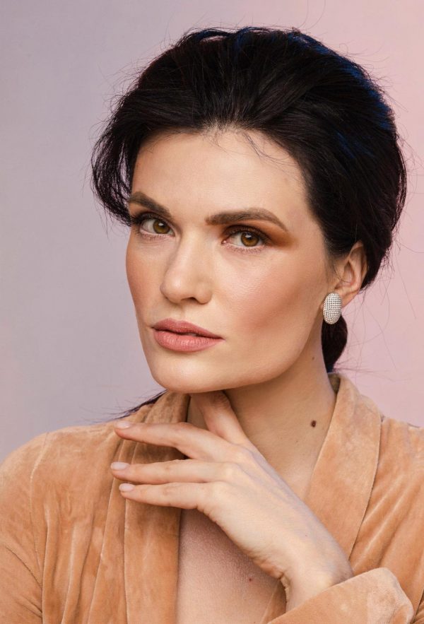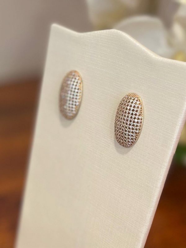 These aren’t your average earrings; they feature a sophisticated, 3D curved surface densely encrusted with micro-pavé crystals. The domed shape adds depth and a “lit-from-within” radiance that flatters every face shape.